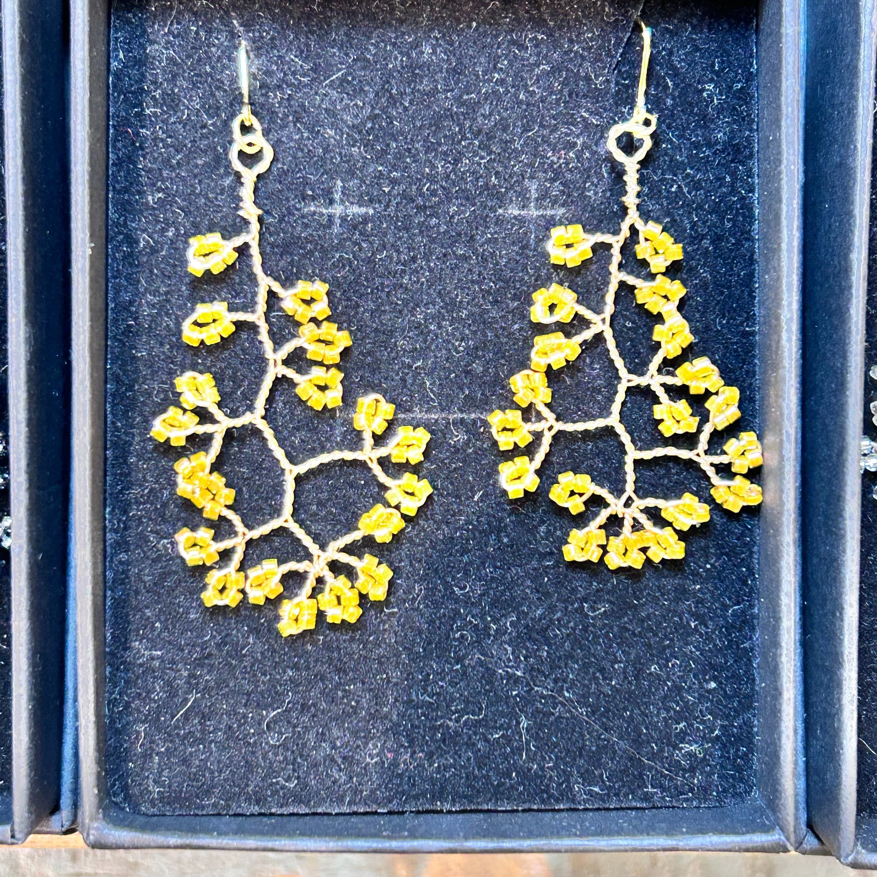 変形体をモチーフにした人気のイヤリングです。色は本物の変形体とリンクしています。10種類制作しています。一つ一つ手作りしていますのでお届け品は写真と作品の色合い、形が少し異なる場合があります。またビーズのモデルが少し変わることがあります。