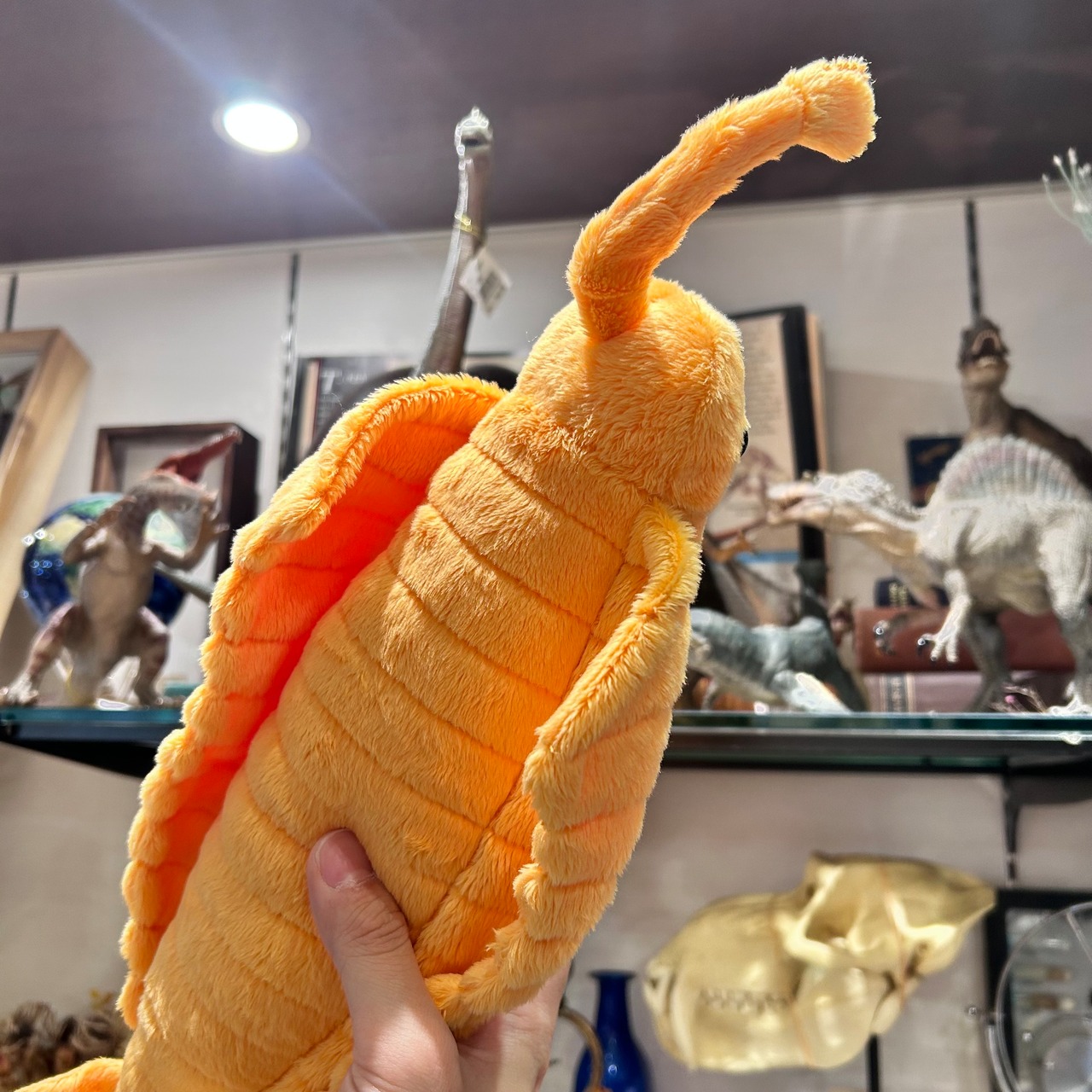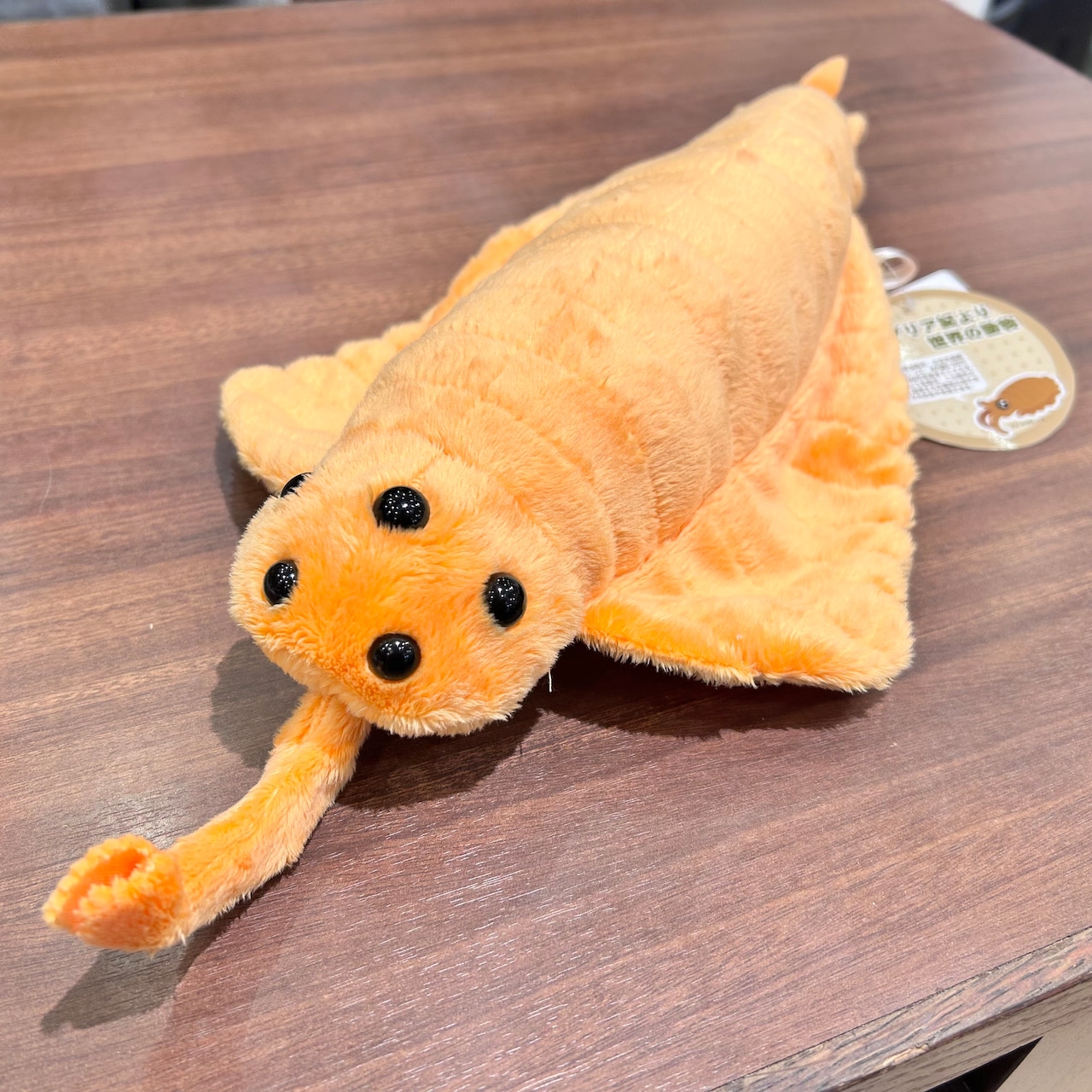 本物のオパビニアは4〜7cm程の体長だったそうですが、こちらのぬいぐるみは全長約45cmという素敵なサイズ感!