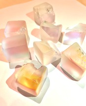 欠けや傷で部品化に至らなかったプリズムの中から、さらに大きな割れや欠けなどでインテリアとしても製品化に至らなかったものを「バレル研磨」という技法を用いて光り輝くガラスの石に仕上げられています。